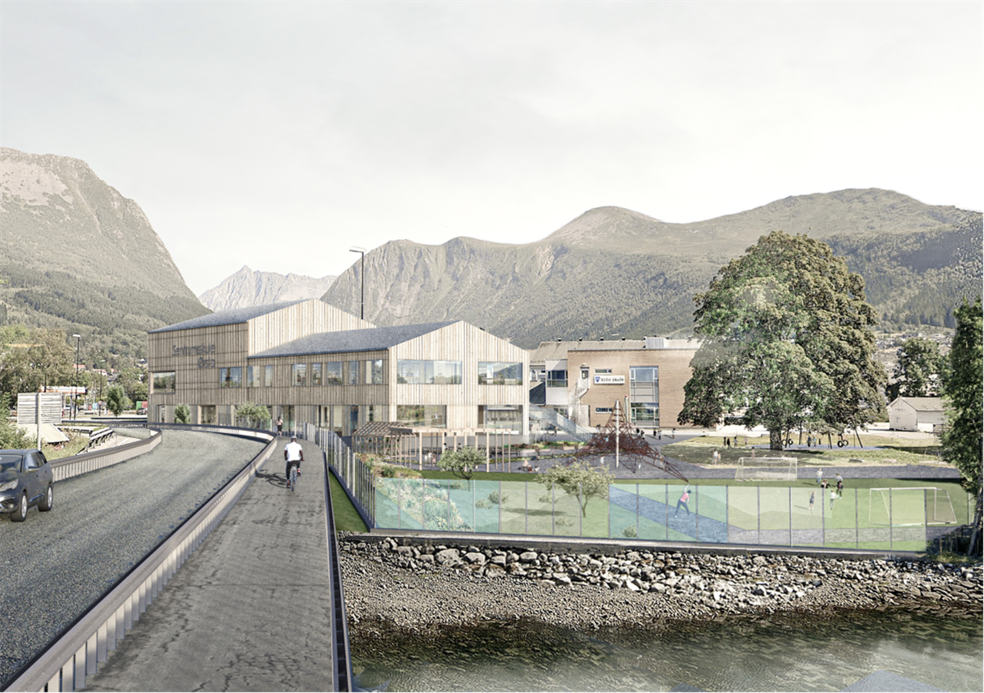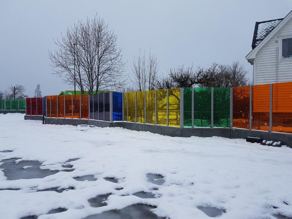 Fargeglad støyskjerm til Velle Skule