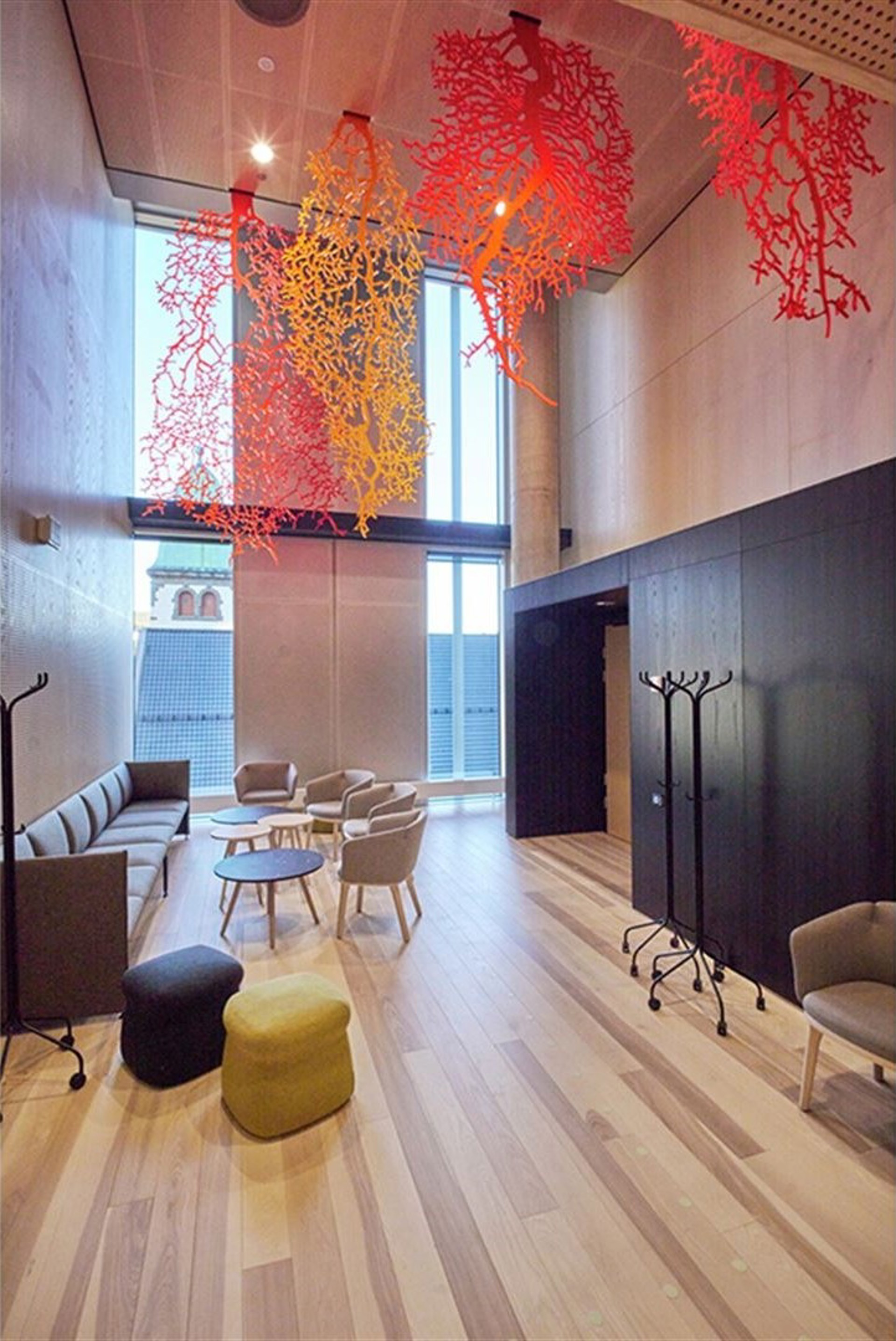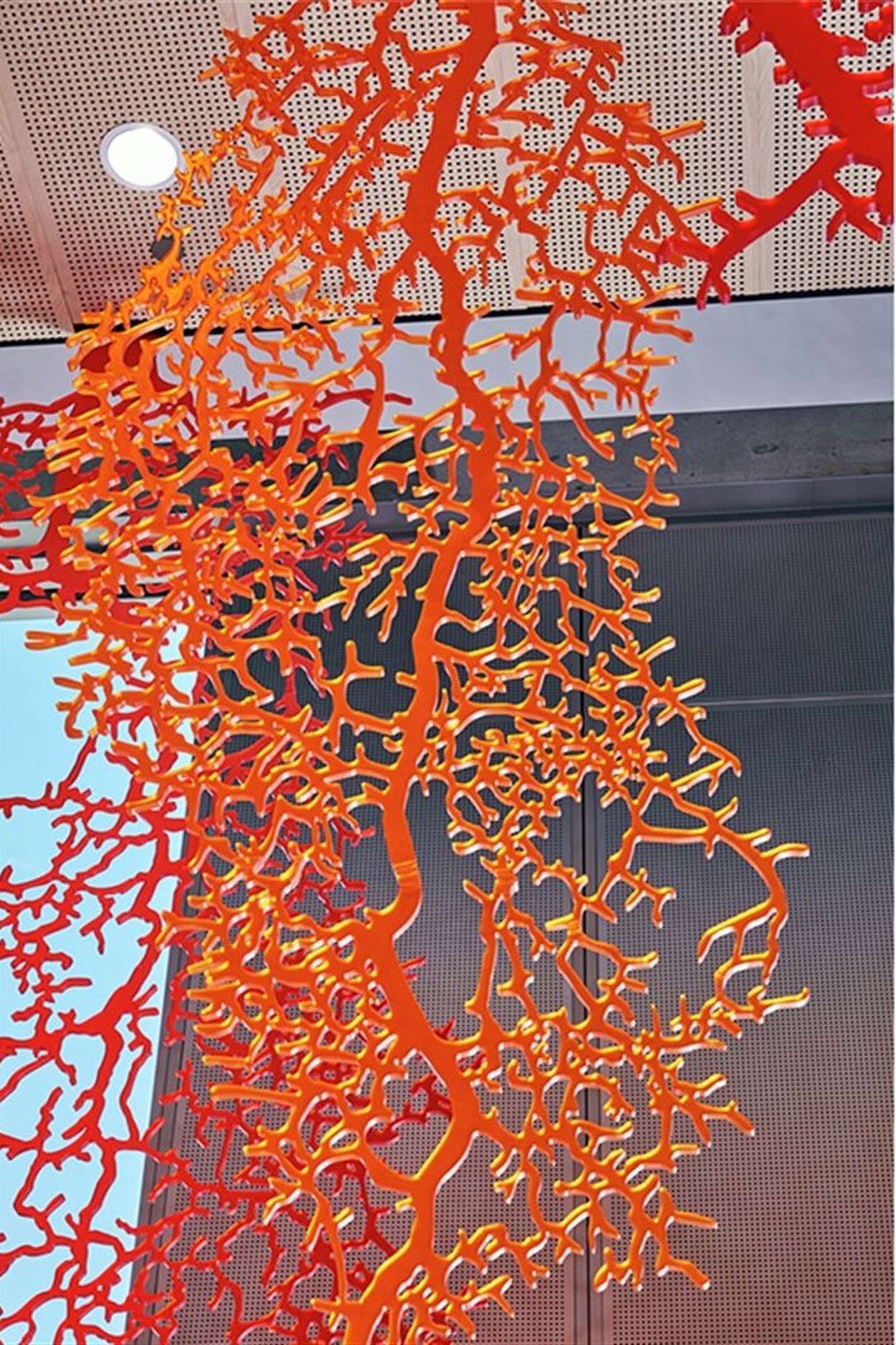 Kunstverket oppleves som sterkt visuelt og leder tankene til naturlige fenomen og hjernekart.